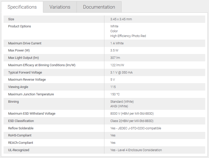 The XLamp® XP-E LED combines the proven lighting-class performance and reliability of the XLamp XR-E LED in a package with an 80% smaller footprint. This smaller package extends Cree’s award-winning LED performance into new LED lighting applications.